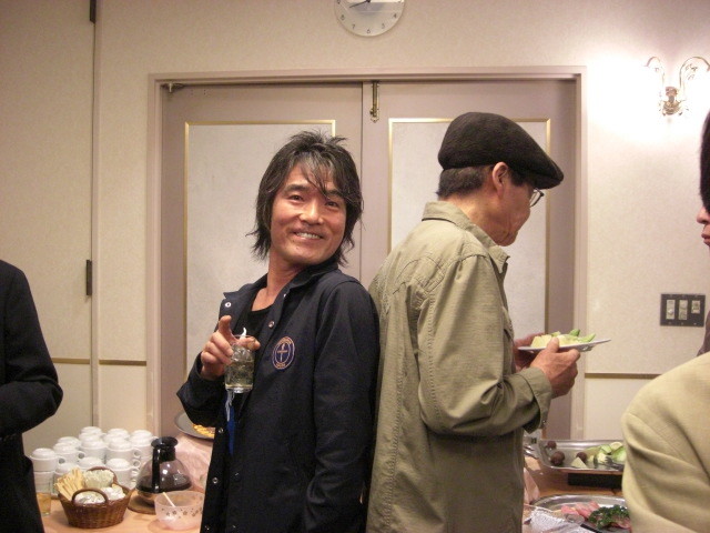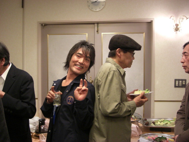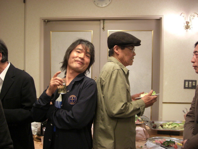 2009年04月18日 劇画50年記念パーティ 辰巳ヨシヒロ氏の背中で(笑)